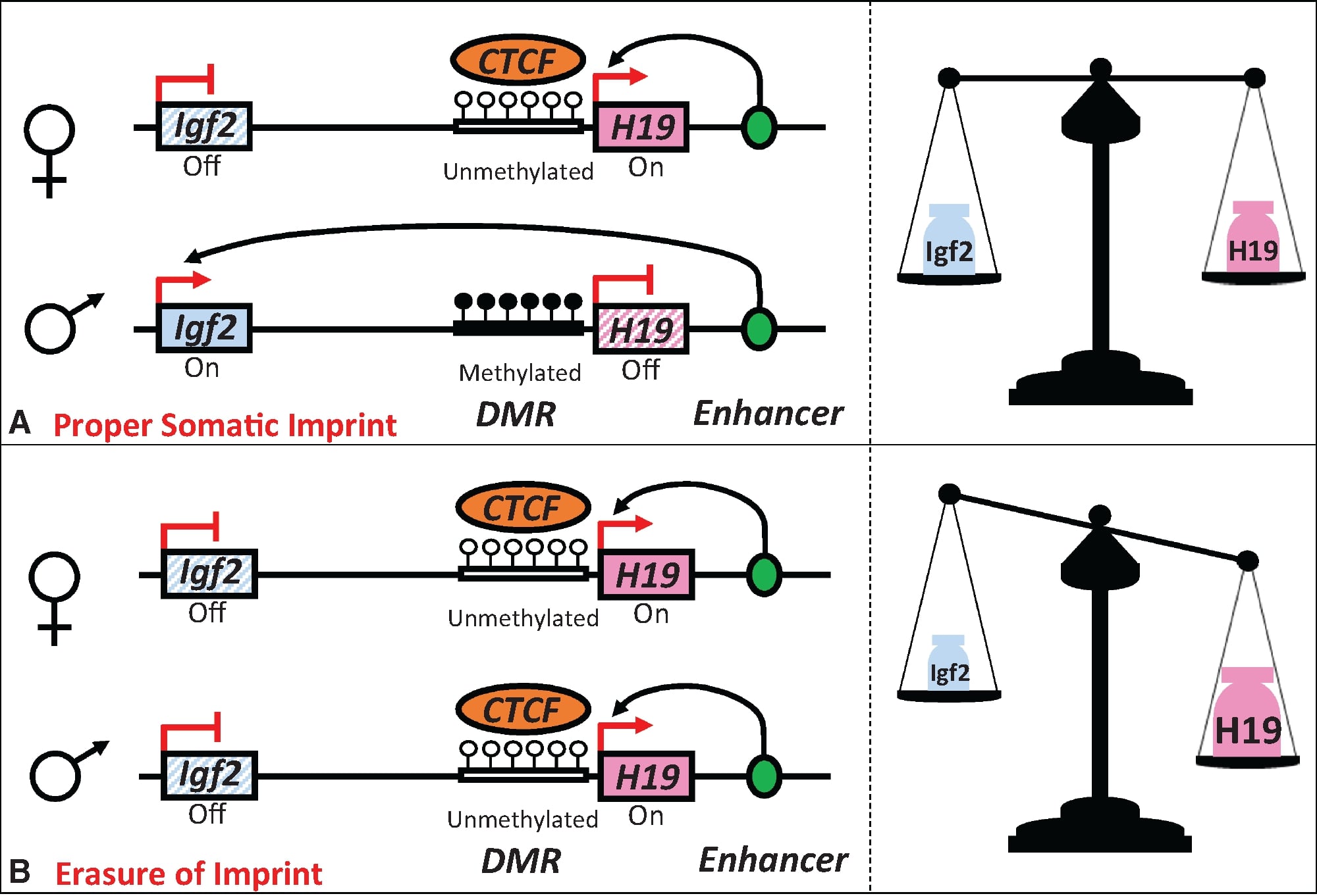 erasure of parental imprinting at the Igf2–H19 locus, which keeps them in a quiescent state in a similar manner as migrating PGCs.